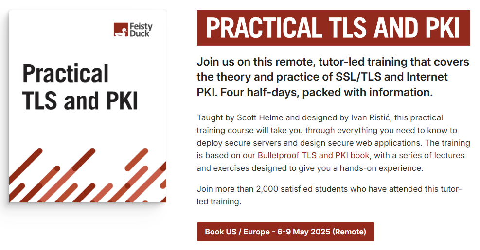 One thing I can recommend is that if you really want to deepen your understanding of this ecosystem, our Practical TLS and PKI training course will do just that.